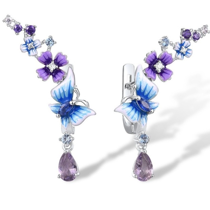 Sterling Silver Earrings Amethyst Cubic Zirconia,Blue Nano Cubic Zirconia,Blue Spinel,Dark Purple CZ,Enamel,Light Purple Cubiz Zirconia,Purple Glass,White Cubic Zirconia (E312522ENASL925)