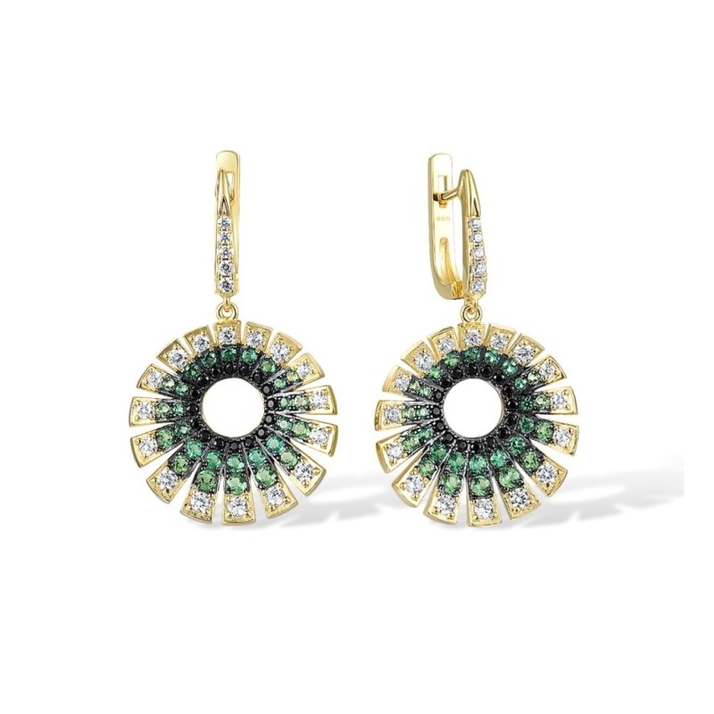 Sterling Silver w/ Yellow Black Plating Earrings Black spinel,Green Spinel,White Cubic Zirconia (E315511BGSZSC925)