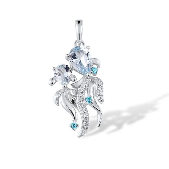 Sterling Silver Pendant Blue Cubic Zirconia,Blue Spinel,White Cubic Zirconia (P305770BLZSL925)