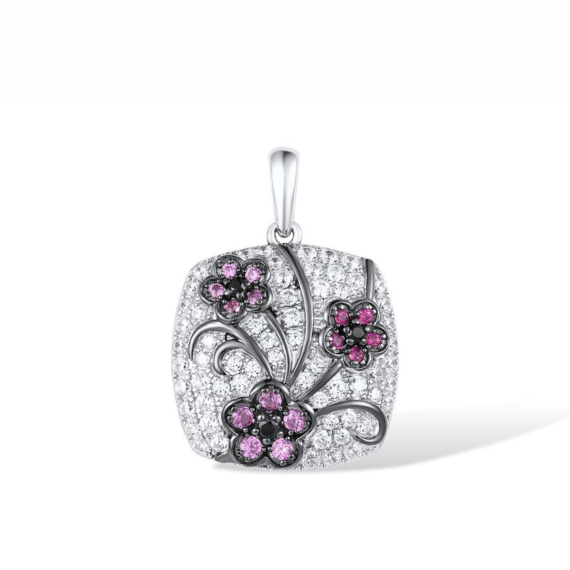 Sterling Silver w/ Black White Plating Pendant Black spinel,Created Pink Sapphire,Created Ruby,White Cubic Zirconia (P316227MULSK925)