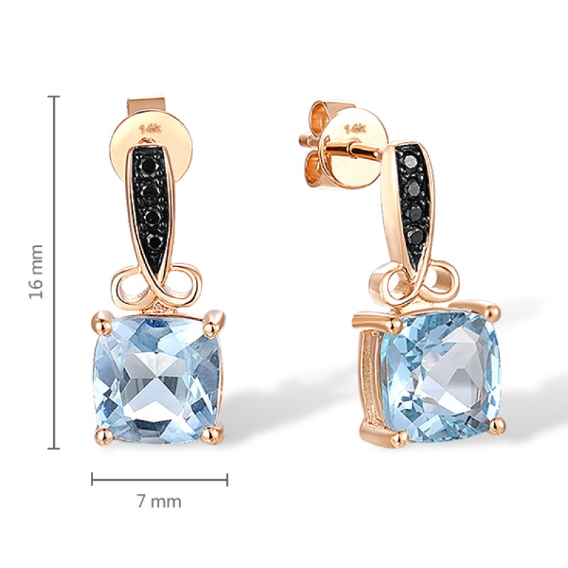 14KRB Earrings Black Diamond,Blue Topaz (Sky Blue) (E316842DBT14KRB)