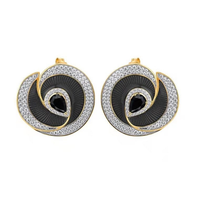 Sterling Silver w/ Ionic Yellow Plating Earrings Enamel,Synthetic Black Spinel,White Cubic Zirconia (E316165ENA2SP925)