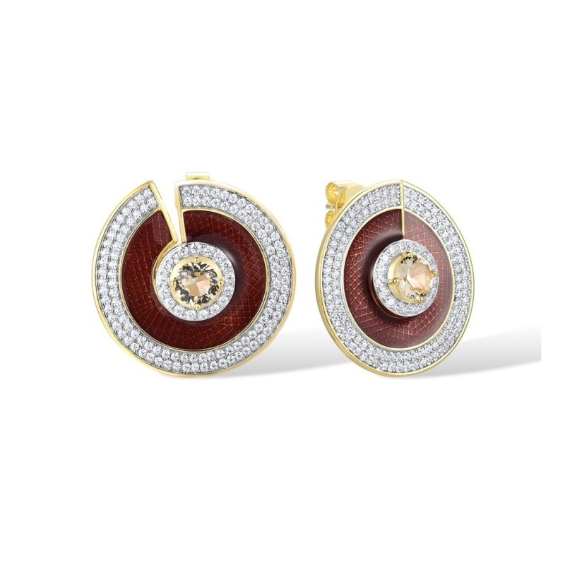 Sterling Silver w/ IONIC YELLOW PLATING Earrings Enamel,White Cubic Zirconia,Yellow Glass (E316164ENA2SP925)