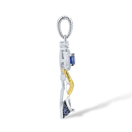 Sterling Silver w/ Yellow Black White Plating Pendant Blue Nano Cubic Zirconia,White Cubic Zirconia (P312833BZZSZ925)