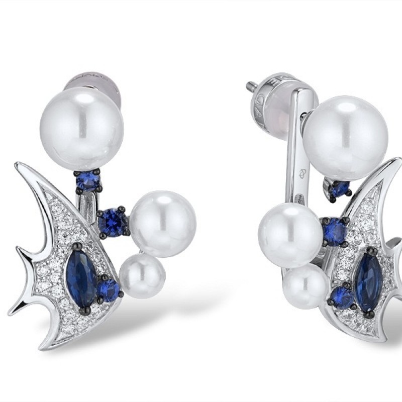 Sterling Silver w/ Black White Plating Earrings Blue Glass,Blue Nano Cubic Zirconia,White Cubic Zirconia,White Shell Beads (E312828MULSK925)
