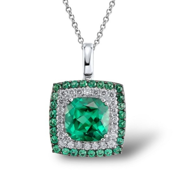 Sterling Silver w/ Black White Plating Pendant Green Spinel,White Cubic Zirconia (P303192GSZSK925)