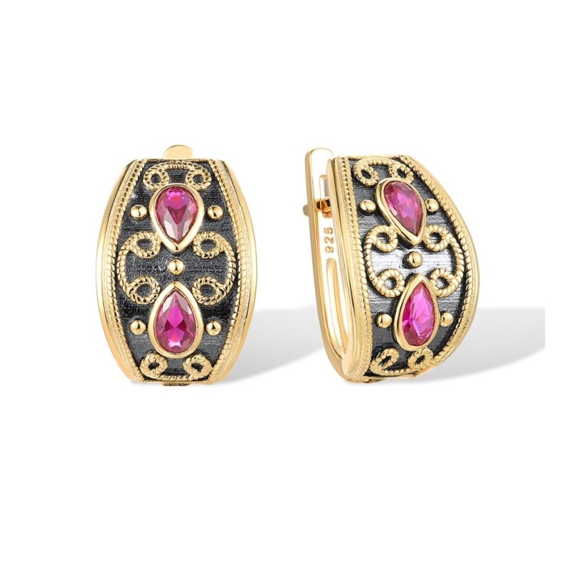 Sterling Silver w/ Yellow Black Plating Earrings Created Ruby (E316943CRUSC925)