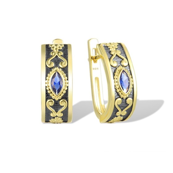 Sterling Silver w/ Yellow Black Plating Earrings Blue Nano Cubic Zirconia (E316942BNZSC925)