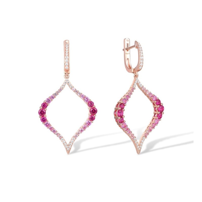 Sterling Silver w/ Rose Plating Earrings Created Pink Sapphire,Created Ruby,White Cubic Zirconia (E316893CPRZSR925)
