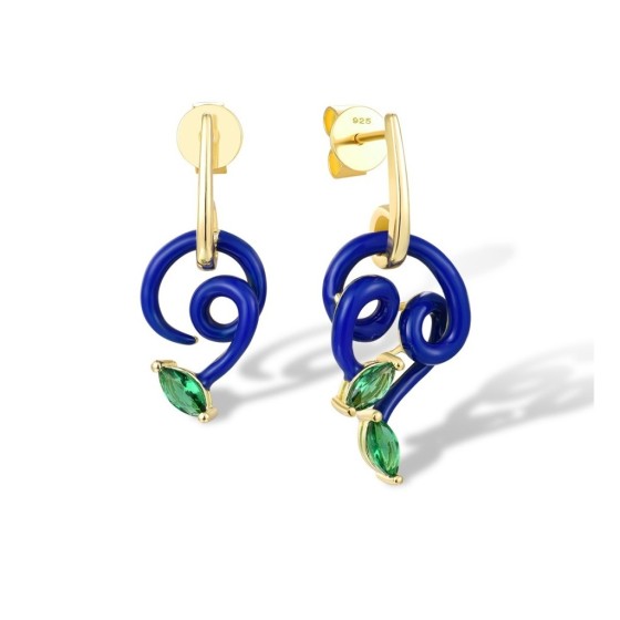 Sterling Silver w/ Yellow Plating Earrings Enamel,Green Glass (E316832ENASY925)