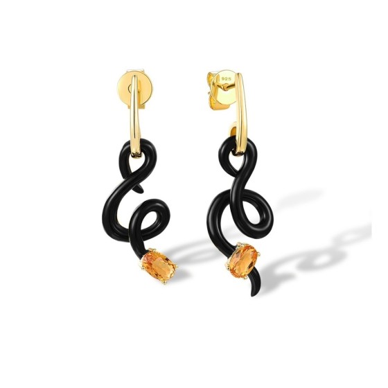 Sterling Silver w/ Yellow Plating Earrings Enamel,Yellow Glass (E316829ENASY925)