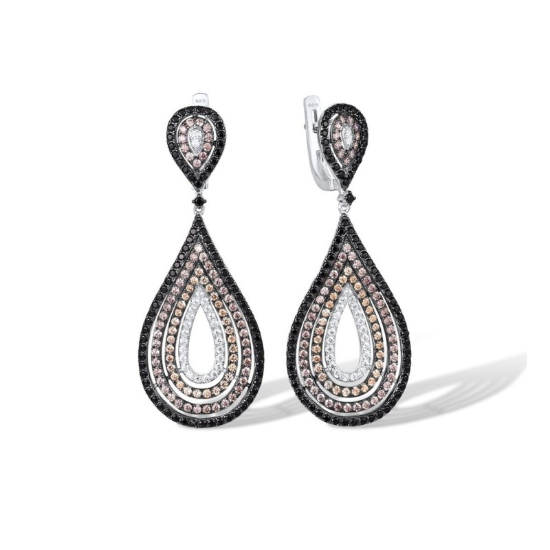 Sterling Silver w/ Black White Plating Earrings Black spinel,Champagne Cubic Zirconia,Nano Brown Spinel,White Cubic Zirconia (E316800MULSK925)