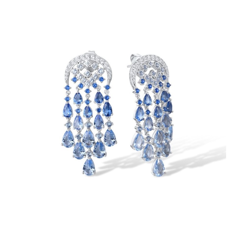 Sterling Silver Earrings Blue Glass,Blue Spinel,White Cubic Zirconia (E316792BGNZSL925)