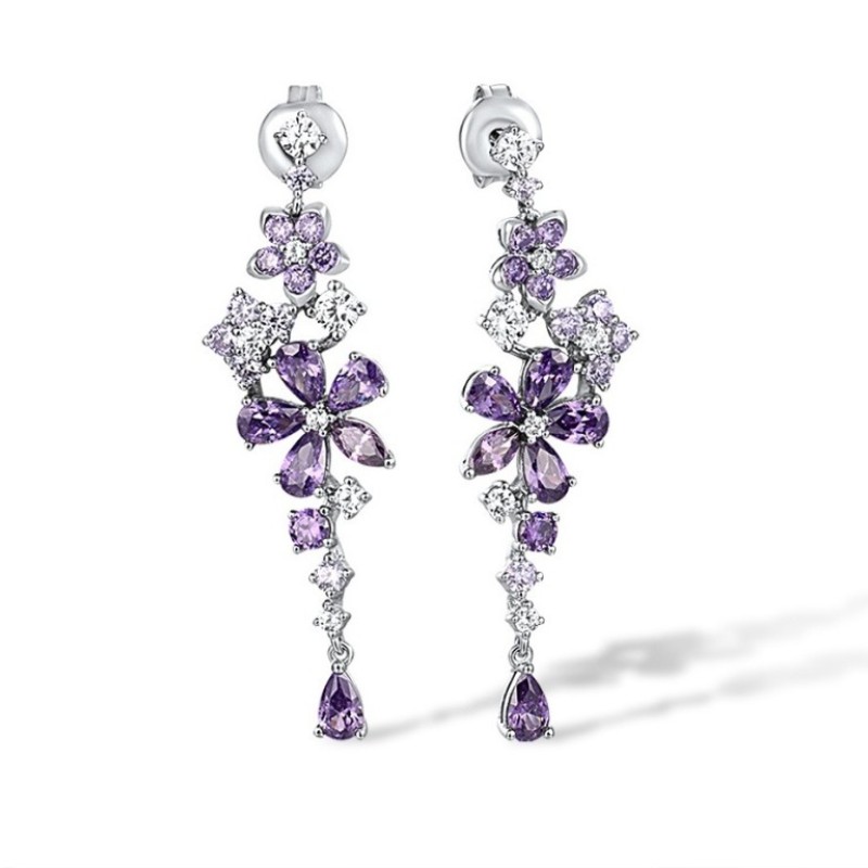 Sterling Silver Earrings Amethyst Cubic Zirconia,Light Purple Cubiz Zirconia,White Cubic Zirconia (E316170ALUZSL925)