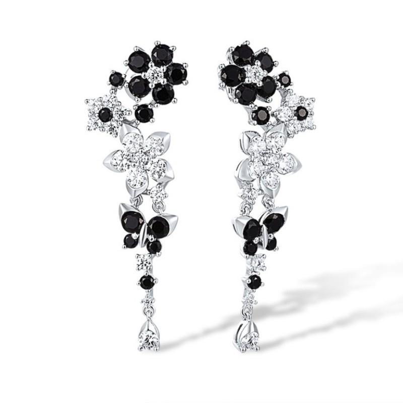 Sterling Silver Earrings Black spinel,White Cubic Zirconia (E316168BSNZSL925)