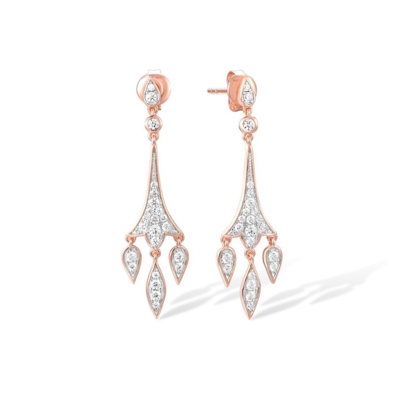 Sterling Silver w/ IONIC ROSE PLATING Earrings White Cubic Zirconia (E317061WCZSQ925)