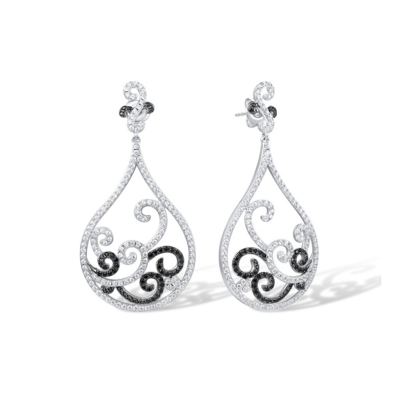 Sterling Silver w/ Black White Plating Earrings Black spinel,White Cubic Zirconia (E317045BSNZSK925)
