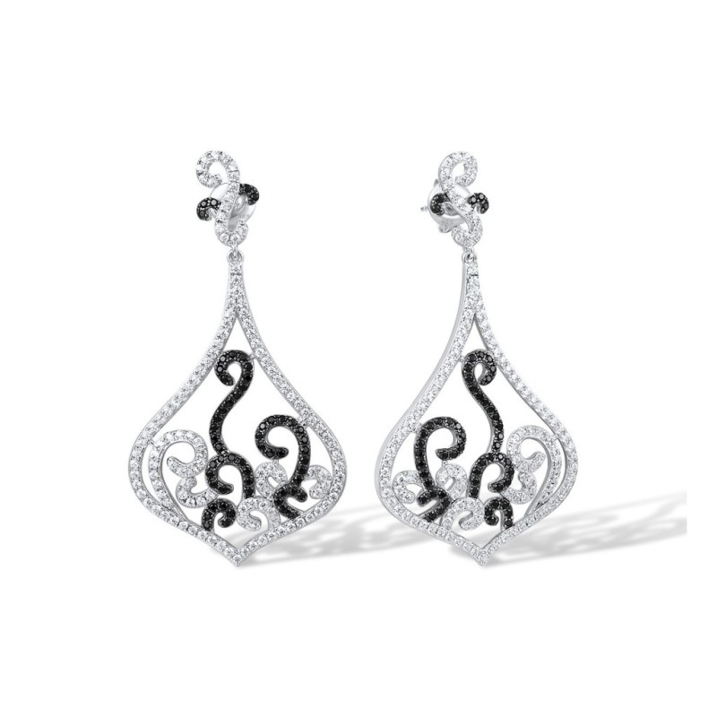 Sterling Silver w/ Black White Plating Earrings Black spinel,White Cubic Zirconia (E317044BSNZSK925)