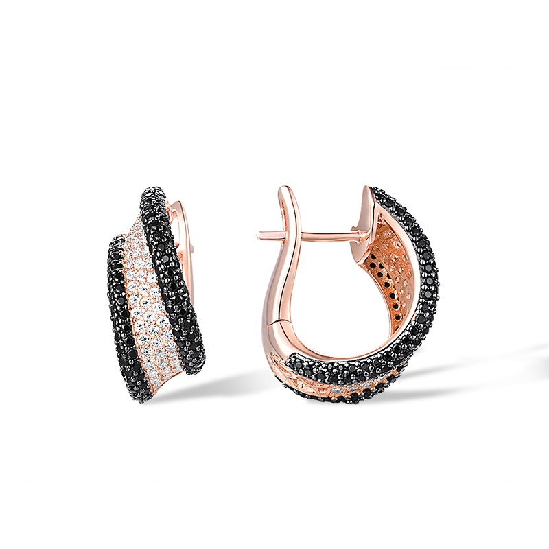 Sterling Silver w/ Rose Black Plating Earrings Black spinel,White Cubic Zirconia (E316964BSNZSD925)