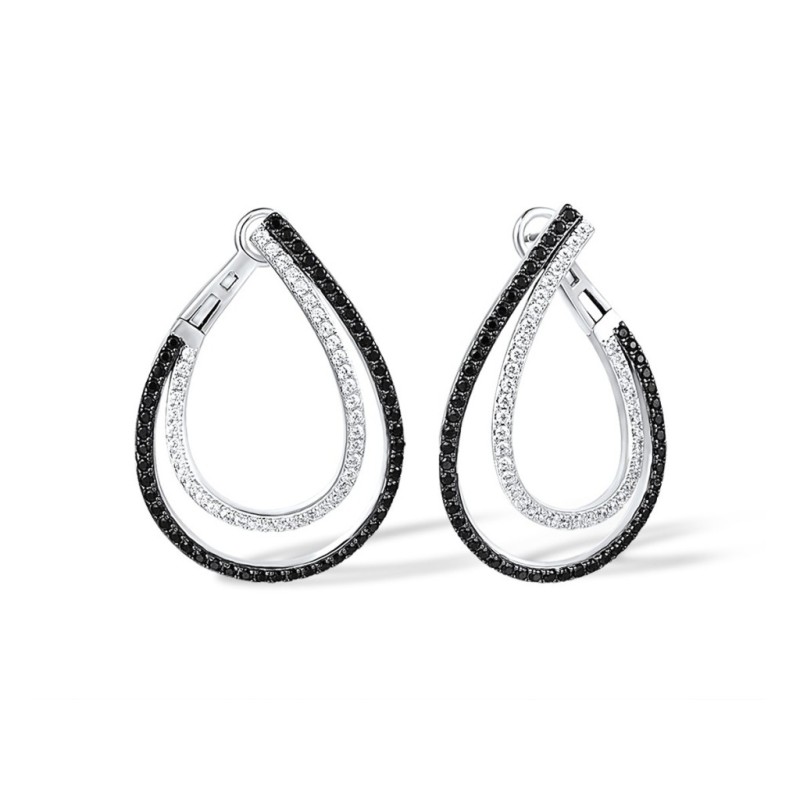 Sterling Silver w/ Black White Plating Earrings Black spinel,White Cubic Zirconia (E316963BSNZSK925)