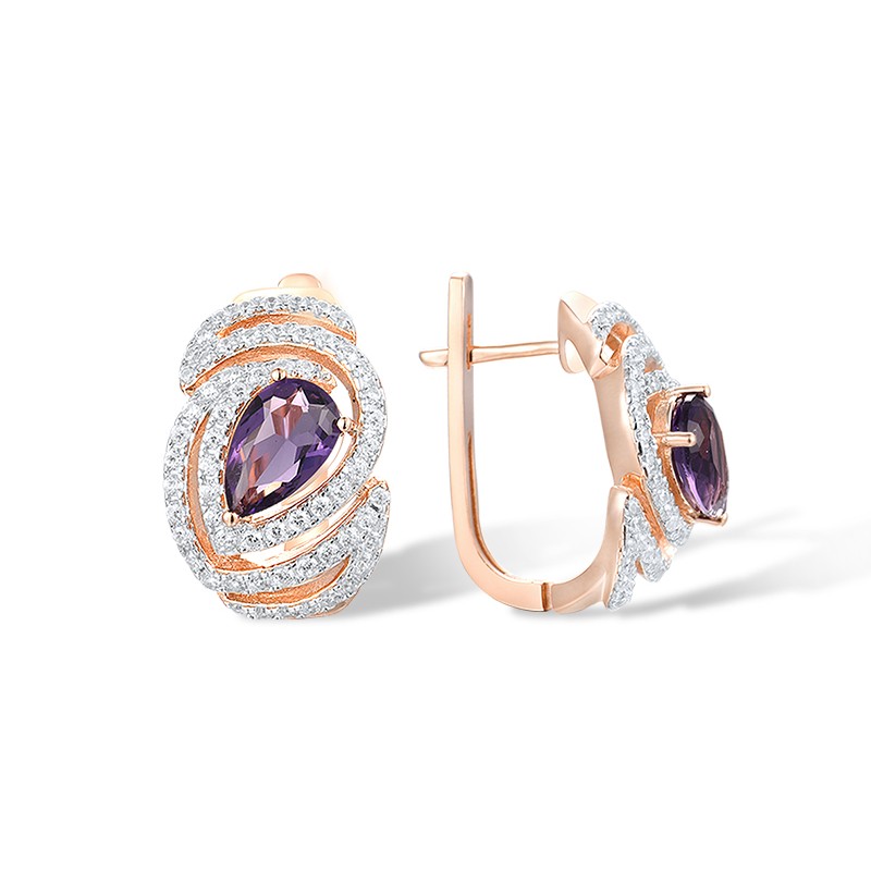 Sterling Silver w/ IONIC ROSE PLATING Earrings Purple Glass,White Cubic Zirconia (E316754PGZSQ925)
