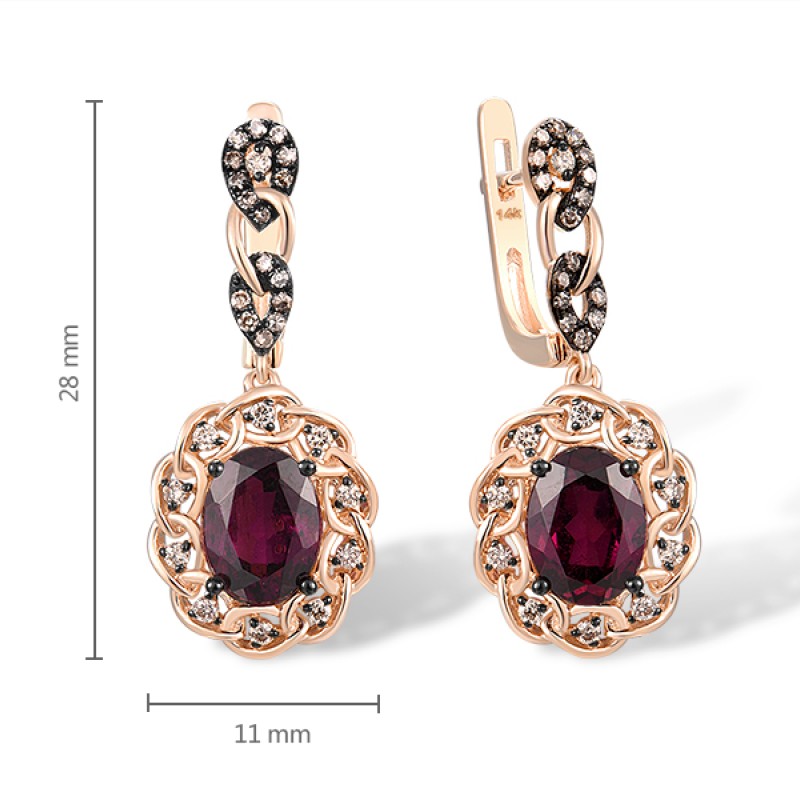 14KRB Earrings Brown Diamond,Rhodolite Garnet (E315948RGB114KRB)