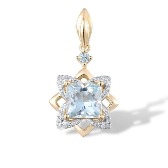 14KYW Pendant Blue Topaz (Sky Blue),Blue Topaz (Swiss Blue),Diamond (P313648BTK14KYW)
