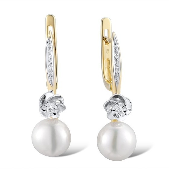 14TT Earrings Diamond,Fresh Water White Pearl (E312870FWP14TT)