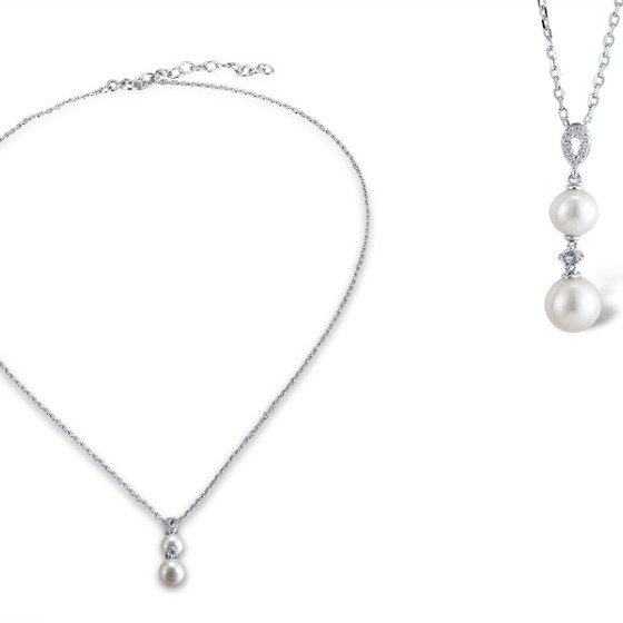 9KW Necklace Diamond,Fresh Water White Pearl,White Topaz (N311637FWT9KW)