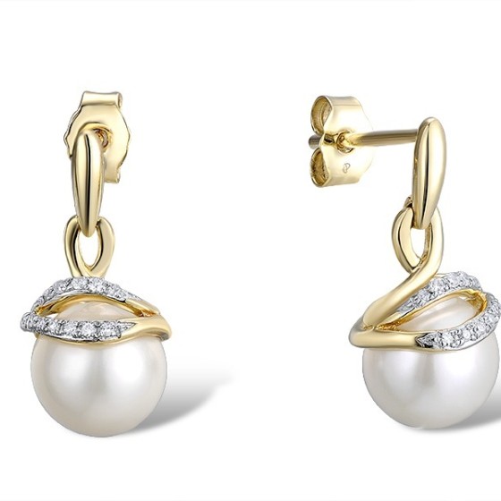 9KYW Earrings Diamond,Fresh Water White Pearl (E311617FWP9KYW)