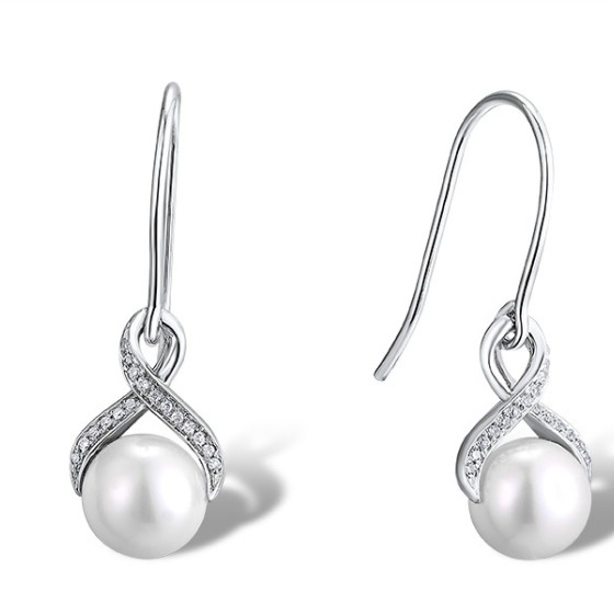 9KW Earrings Diamond,Fresh Water White Pearl (E311599FWP9KW)