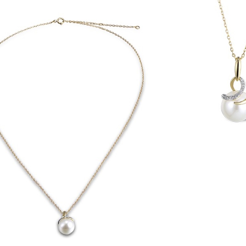 9KYW Necklace Diamond,Fresh Water White Pearl (N311595FWP9KYW)