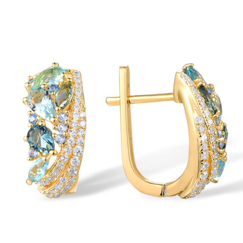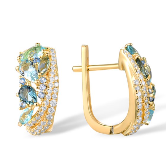 Sterling Silver w/ Yellow Plating Earrings Blue Glass,Blue Spinel,White Cubic Zirconia (E307743BGNZSY925)