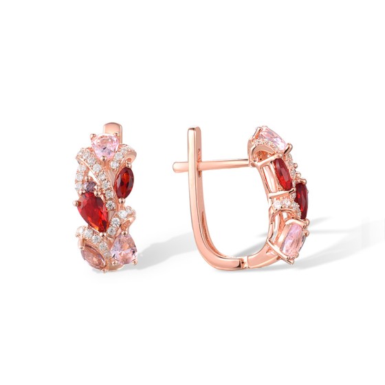 Sterling Silver w/ Rose Plating Earrings Pink Glass,Purple Glass,Red Glass,Rhodolite Garnet Cubic Zirconi,White Cubic Zirconia (E307444SMUL2SR925)