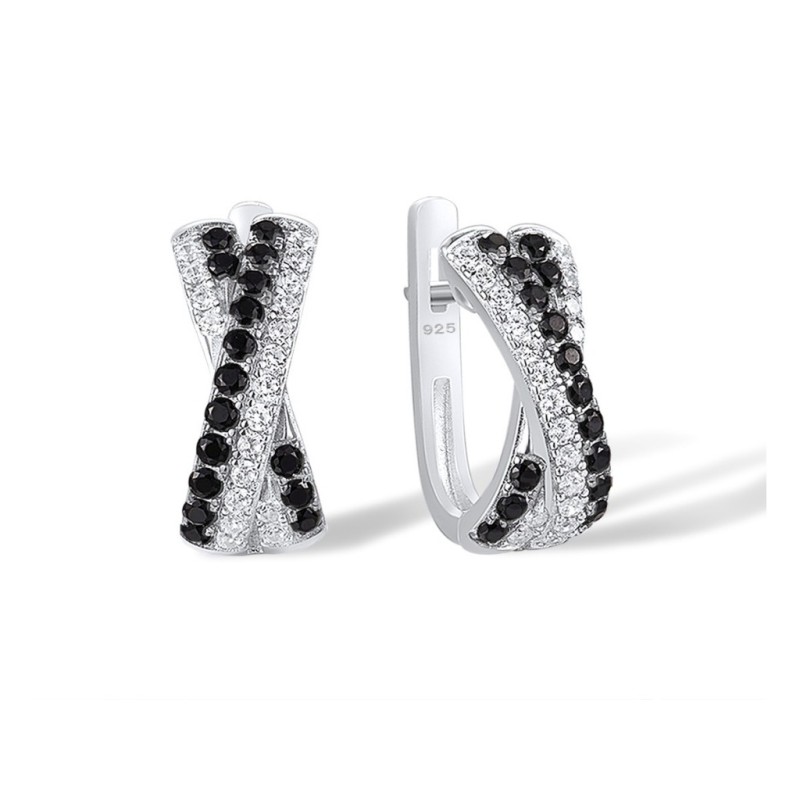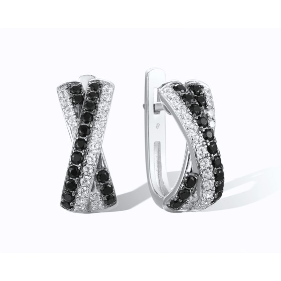 Sterling Silver w/ Black White Plating Earrings Synthetic Black spinel,White Cubic Zirconia (E307281BSNZSK925)