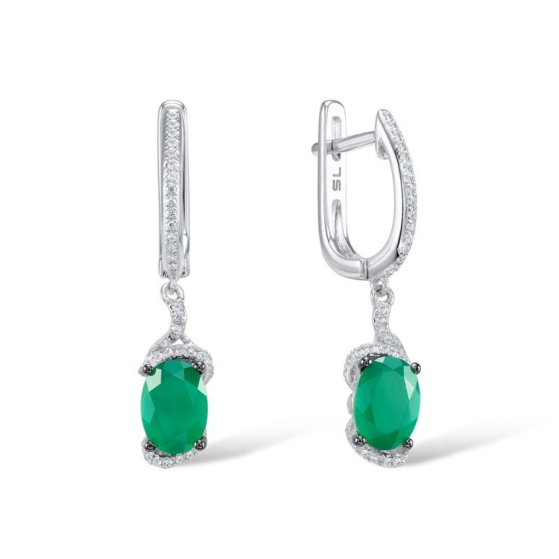 Sterling Silver Earrings Green Chalcedony,White Cubic Zirconia (E306400GCWZSL925)