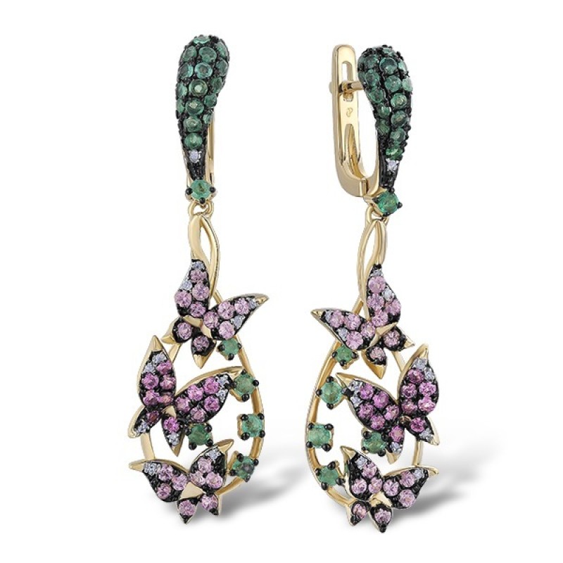 14KYWB Earrings Diamond,Emerald,Pink Sapphire (E304082EPS14KYWB)