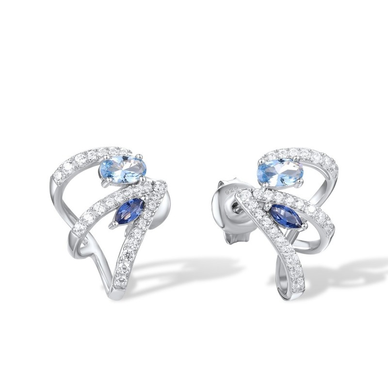 Sterling Silver Earrings Blue Nano Cubic Zirconia,Blue Spinel,White Cubic Zirconia (E317211BNBZSL925)