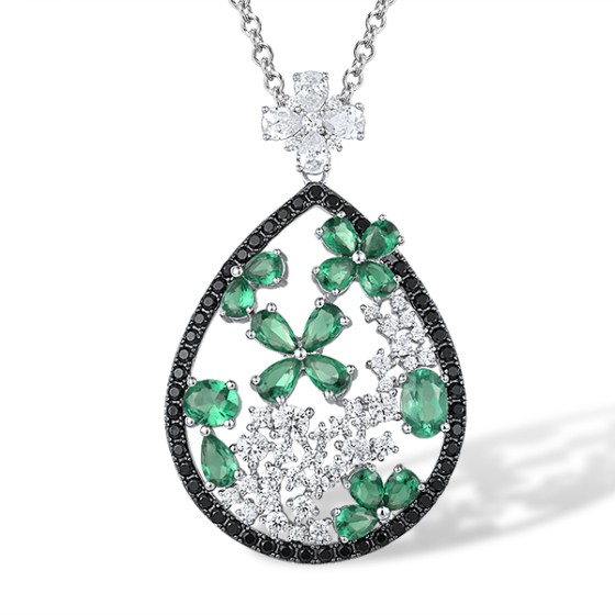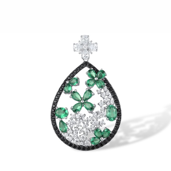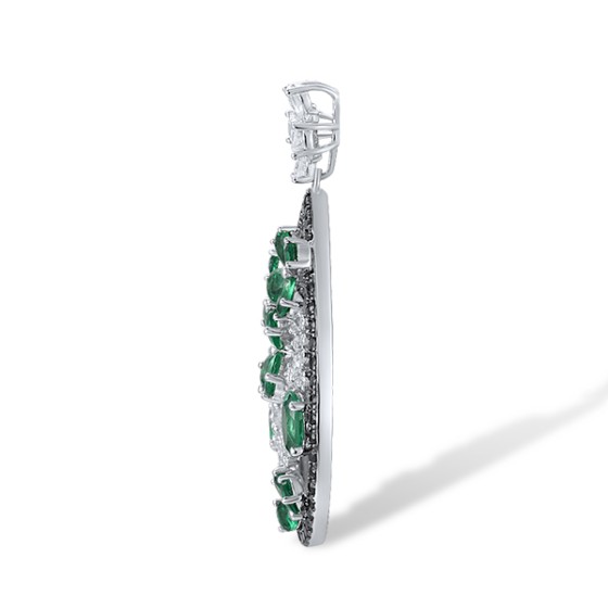 Sterling Silver w/ Black White Plating Pendant Black spinel,Green Spinel,White Cubic Zirconia (P317178BGSZSK925)