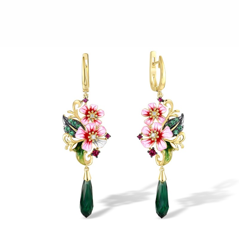 Sterling Silver w/ Yellow Black Plating Earrings Created Ruby,Enamel,Green Glass,Green Spinel,White Cubic Zirconia (E314955ENASC925)