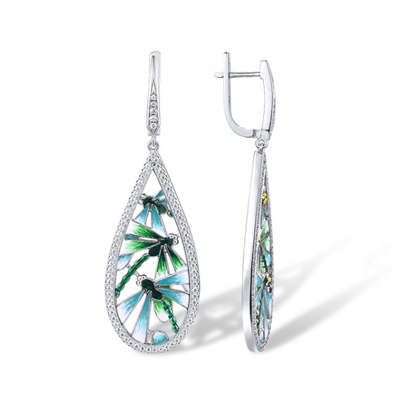 Sterling Silver w/ IONIC YELLOW PLATING Earrings Enamel,White Cubic Zirconia (E314123ENA1SP925)