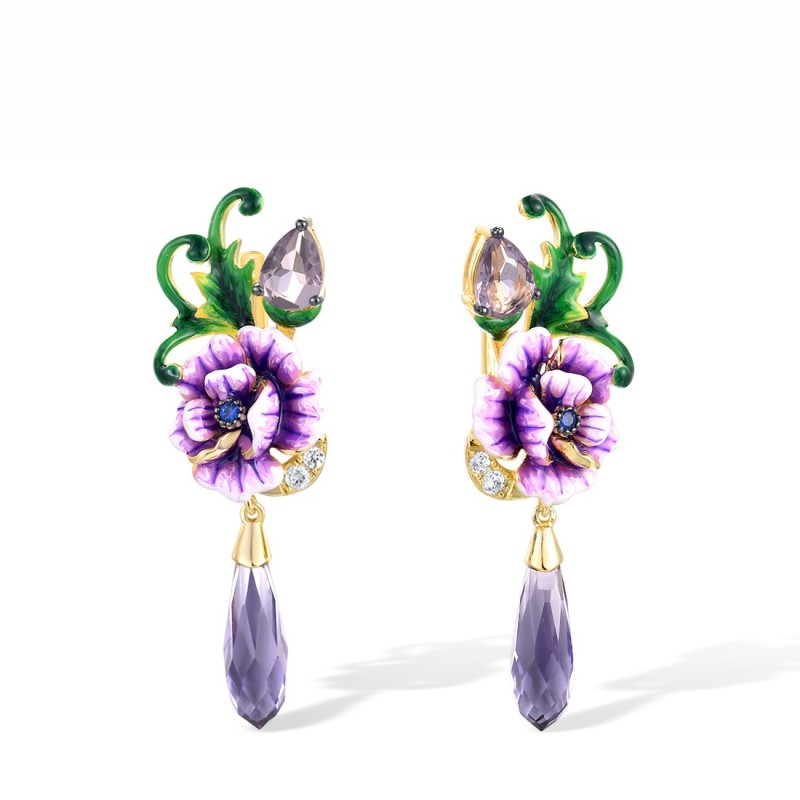 Sterling Silver w/ Yellow Black Plating Earrings Blue Spinel,Enamel,Purple Glass,White Cubic Zirconia (E313932ENASC925)