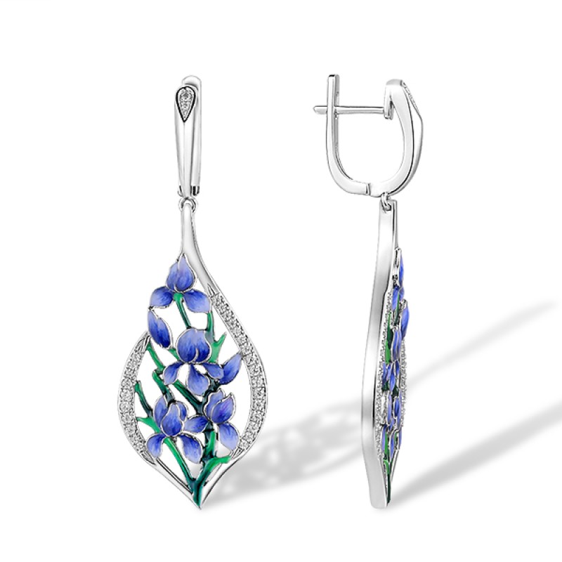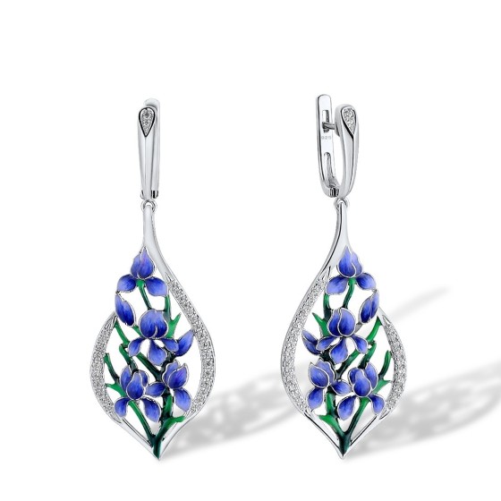 Sterling Silver Earrings Enamel,White Cubic Zirconia (E313616ENSSL925)
