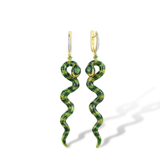 Sterling Silver w/ IONIC YELLOW PLATING Earrings Enamel,Green Spinel,White Cubic Zirconia (E310100ENASP925)