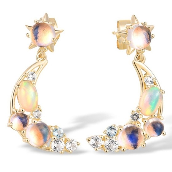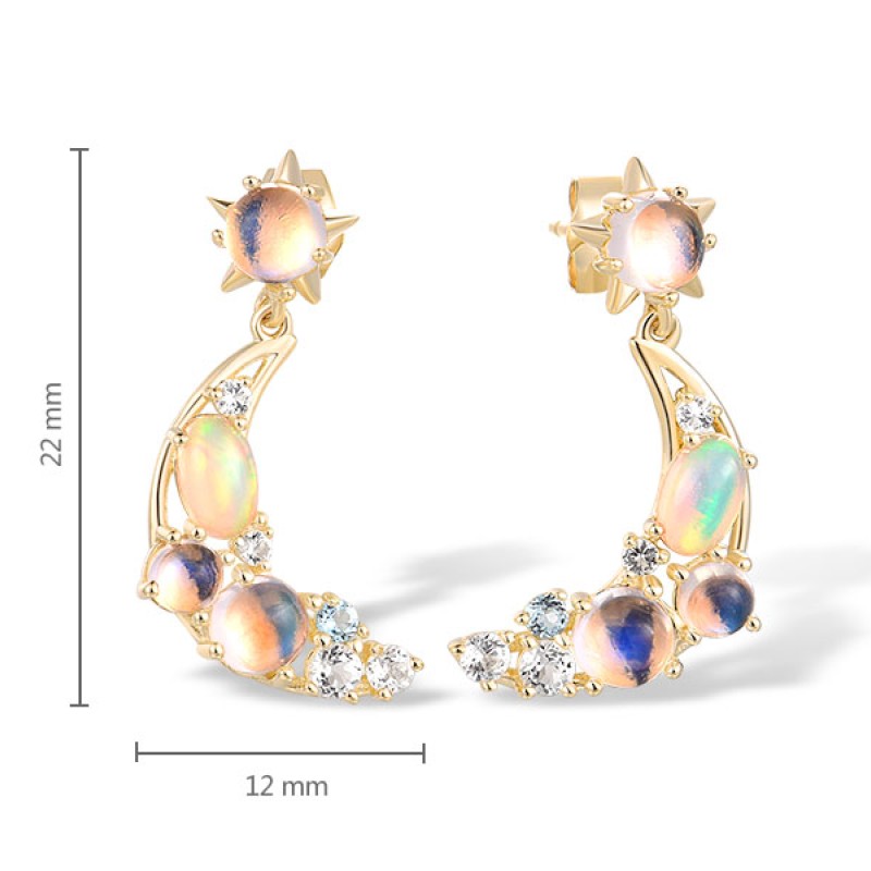 14KY Earrings Blue Moonstone,Blue Topaz (Swiss Blue),Opal,White Topaz (E317476BMOT14KY)