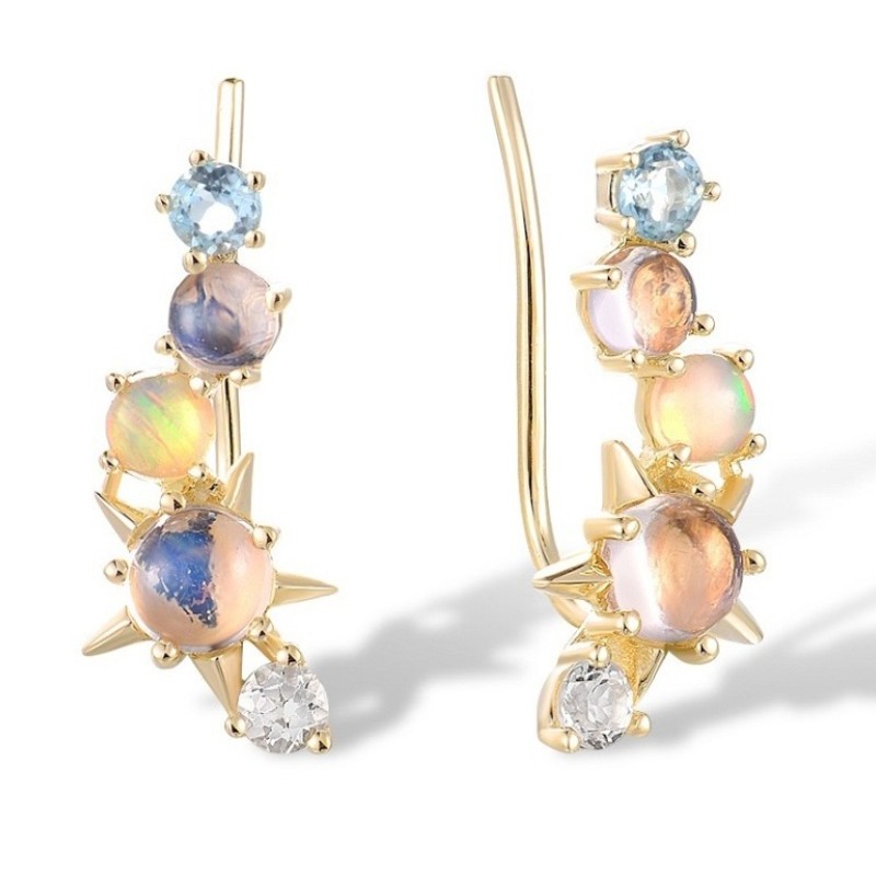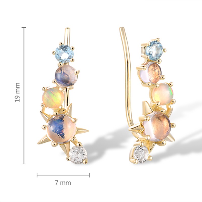 14KY Earrings Blue Moonstone,Blue Topaz (Swiss Blue),Opal,White Topaz (E317472BMOT14KY)