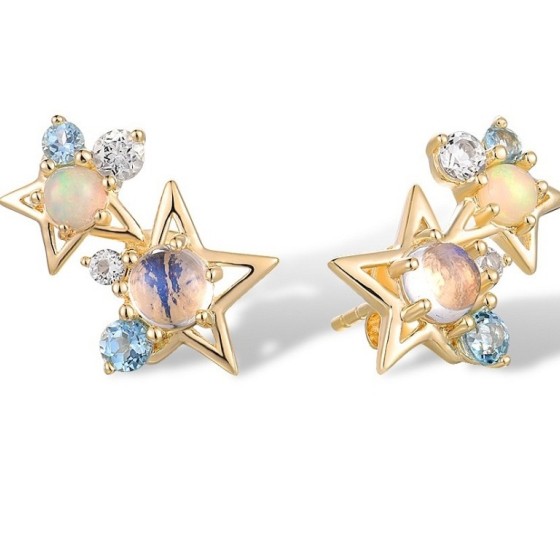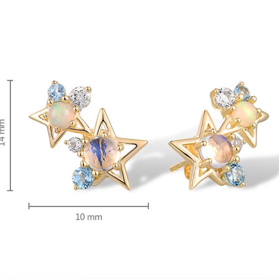 14KY Earrings Blue Moonstone,Blue Topaz (Swiss Blue),Opal,White Topaz (E317471BMOT14KY)