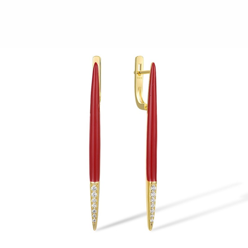 Sterling Silver w/ Yellow Plating Earrings Enamel,White Cubic Zirconia (E317217ENASY925)