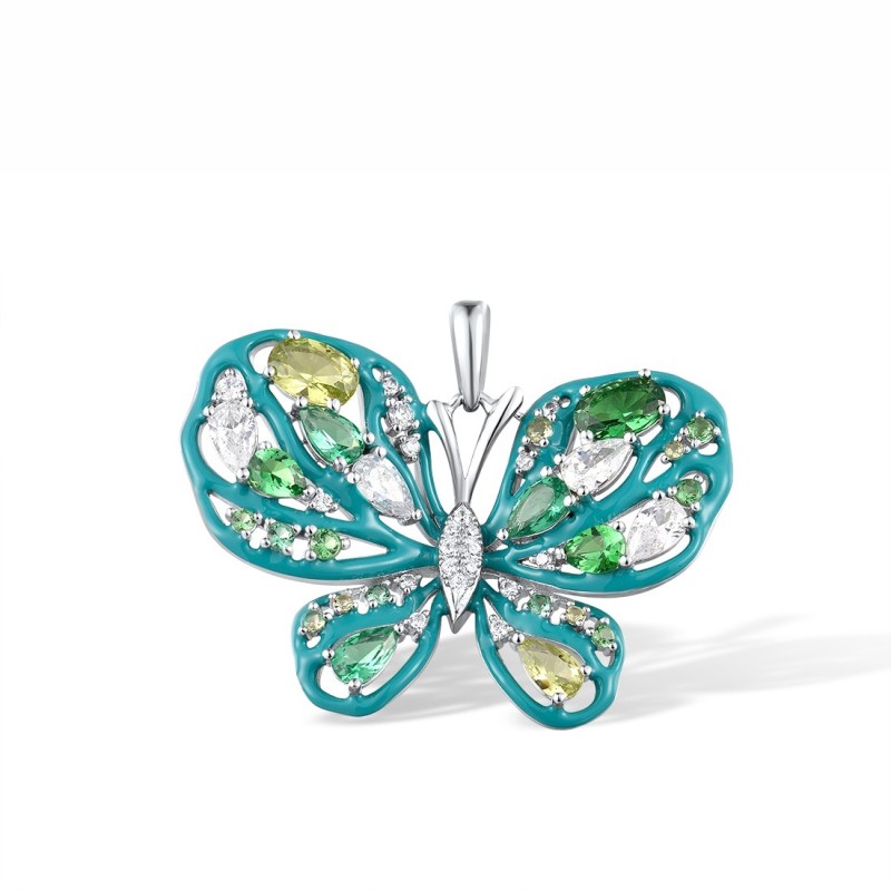 Sterling Silver Pendant Enamel,Green Nano Cubic Zirconia (Per,Green Spinel,White Cubic Zirconia (P317050ENASL925)