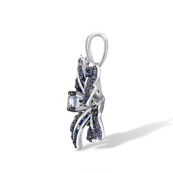 Sterling Silver w/ Black White Plating Pendant Blue Nano Cubic Zirconia,Blue Spinel (P316702BNNZSK925)